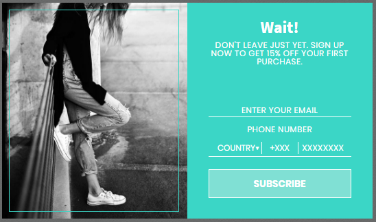 Once the customer has scrolled to the bottom of your pitch, it’s time for a popup that encourages them to sign up. This can take the form of joining a ‘preferred customer’ list or signing up for sales and discounts. You can give two options, signing up or a humorous version of not participating: