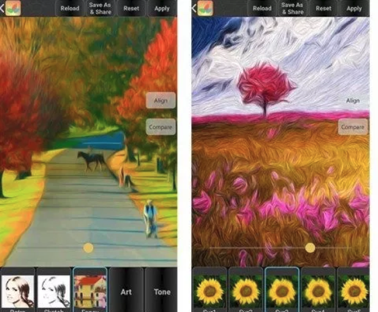 If you want to convert your photos to a work of art, Bonfire should be your choice. Apart from providing the basic filters like HDR, black and white and image adjustment tools, it also has blemish removing and skin smoothing features as well, however, the thing that makes it special is a set of unique filters. One of them is Fancy, which turns your photos into a watercolor painting. Although Prisma started this feature years ago, Bonfire is worth giving a try.