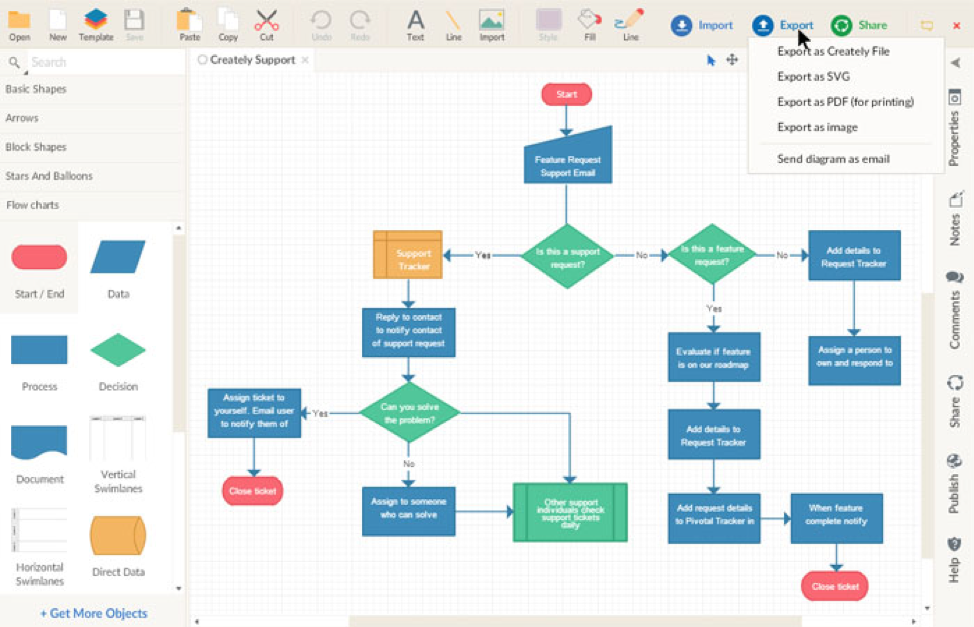 Many times, we need to explain complex ideas such as architecture and processes in our content. Providing a visual breakdown of our ideas makes it easy for readers to understand what we’re saying. Creately enables you to simplify complex ideas using visuals. For example, you can use it to help your readers better understand workflows, showcase your products & services. With Creately, you can collaborate in real-time and create more than 50 types of visuals to communicate your ideas.