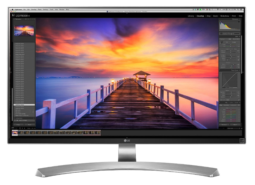 Your second option is a bit more pricey, but it is 4K. The LG 27UD88-W 27-inch 4K UHD IPS display. Just like the Acer, the LG 27UD88 offers a USB-C port that can be used to connect directly to the MacBook. It sports a 3840 x 2160 resolution and also offers additional USB 3.0 ports. The LG has stunning color accuracy too.