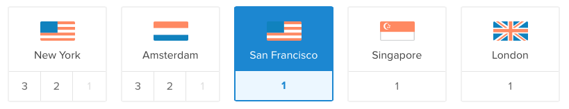 Next you need to select a location (the datacenter) of your droplet. Typically it’s best to pick a location that’s close to you or the majority of your visitors/users.