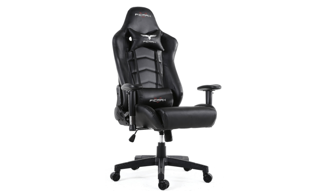 The Ficmax Swivel Gaming Chair is characterized by an ergonomic design covered by high-quality PU Leather that is hassle-free to clean and is fade-resistant. The lumbar and headrest cushions are removable, with adjustability for height and the armrest. It also has a 180-degree recline angle and a retractable footrest.