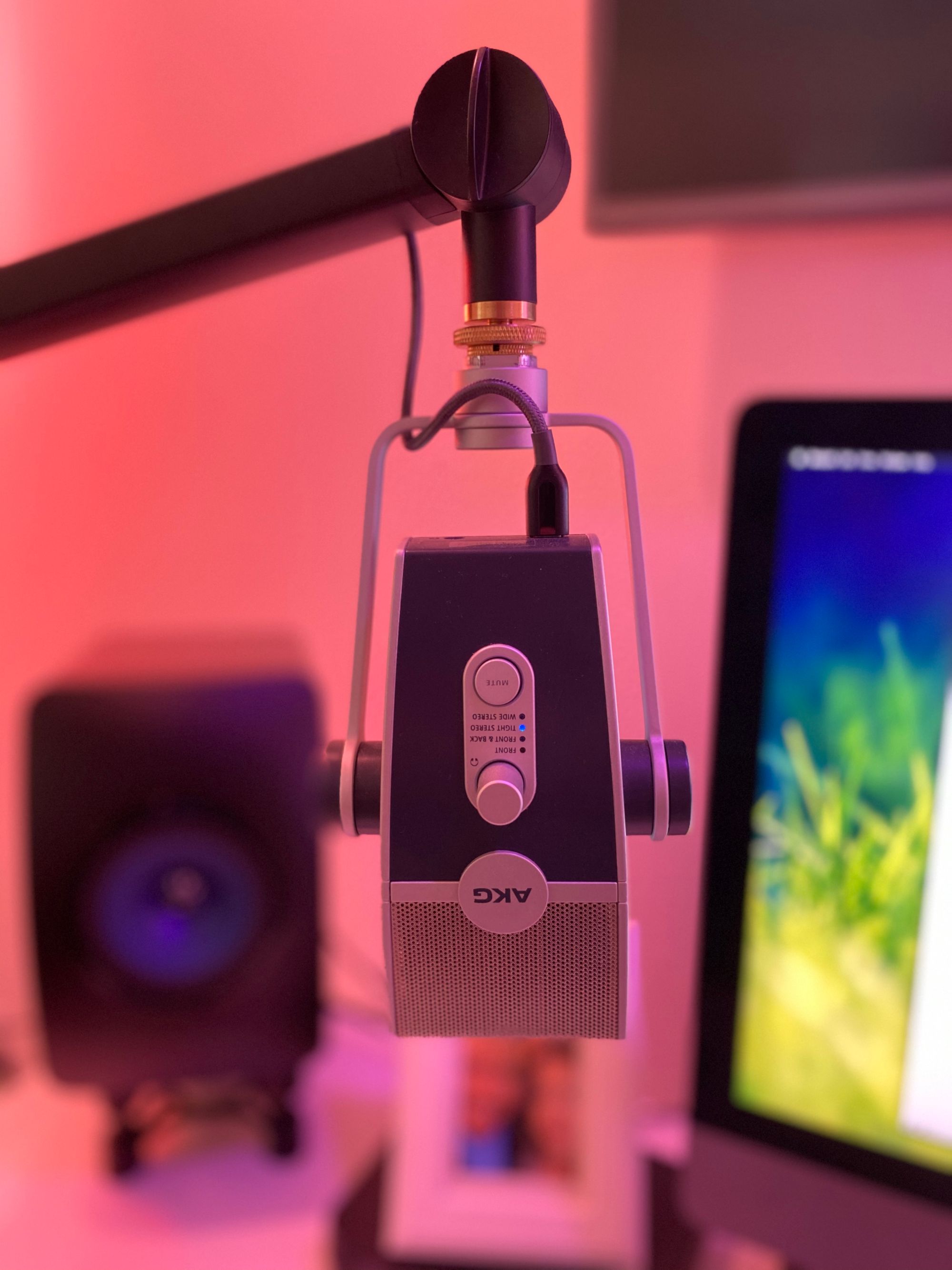 The AKG Lyra is the perfect microphone for the ultimate work from home setup – it's a USB-C mic with ultra-HD quality audio which is a market-y term for saying it supports up to 24-bit/192kHz high-resolution recording. It also features four different mic-array modes to provide the sound you're looking for. I personally use the Tight Stereo setting along with some minor gain adjustments and it sounds great on my podcast.