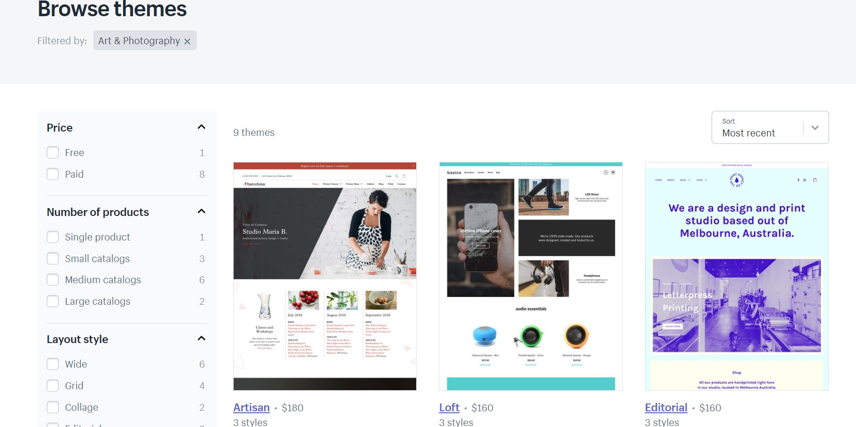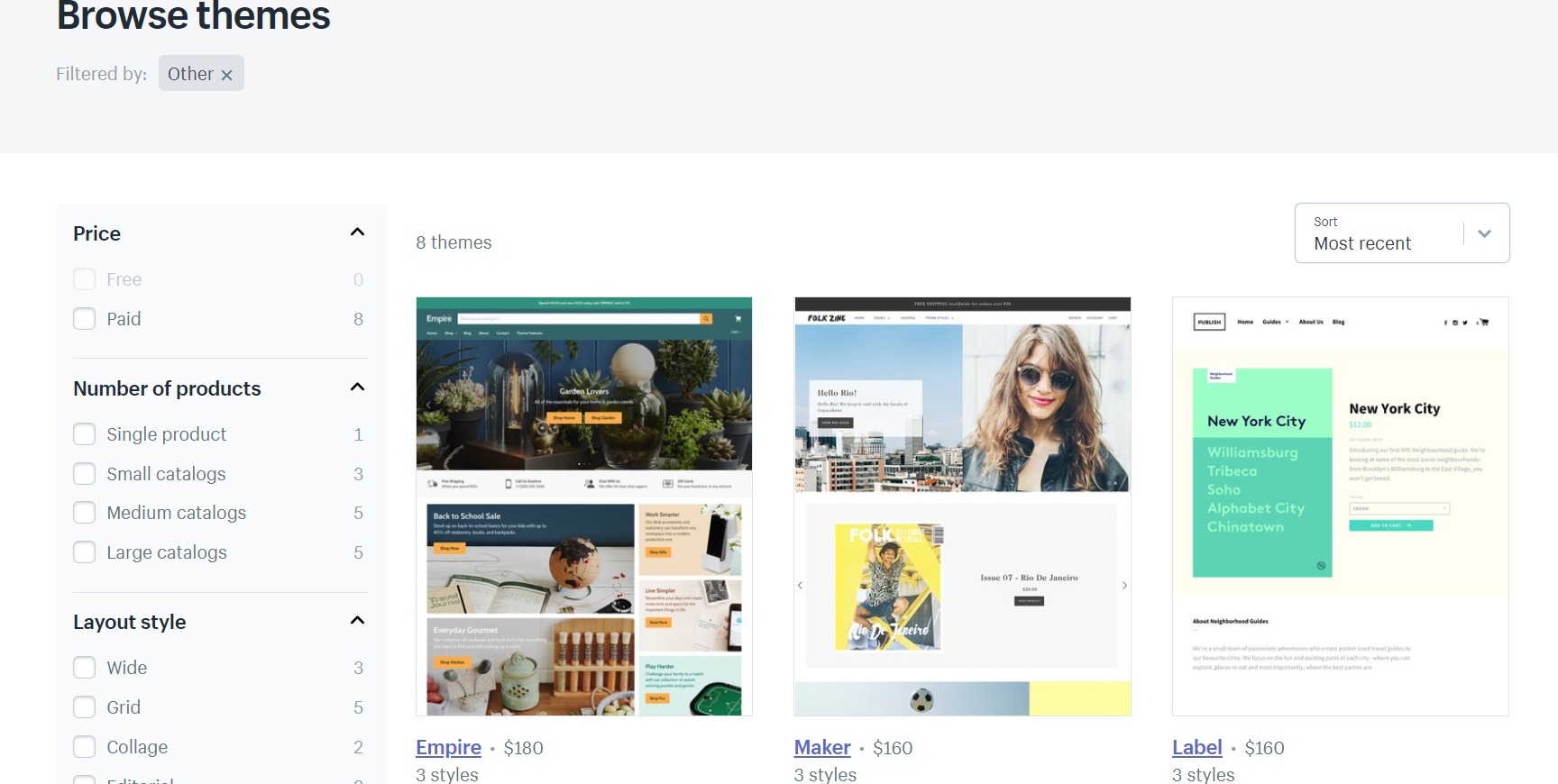 There are also several themes available for businesses that don’t fit in any industry mold. From businesses selling shoelaces to budding songwriters or musicians, Shopify themes have you covered.