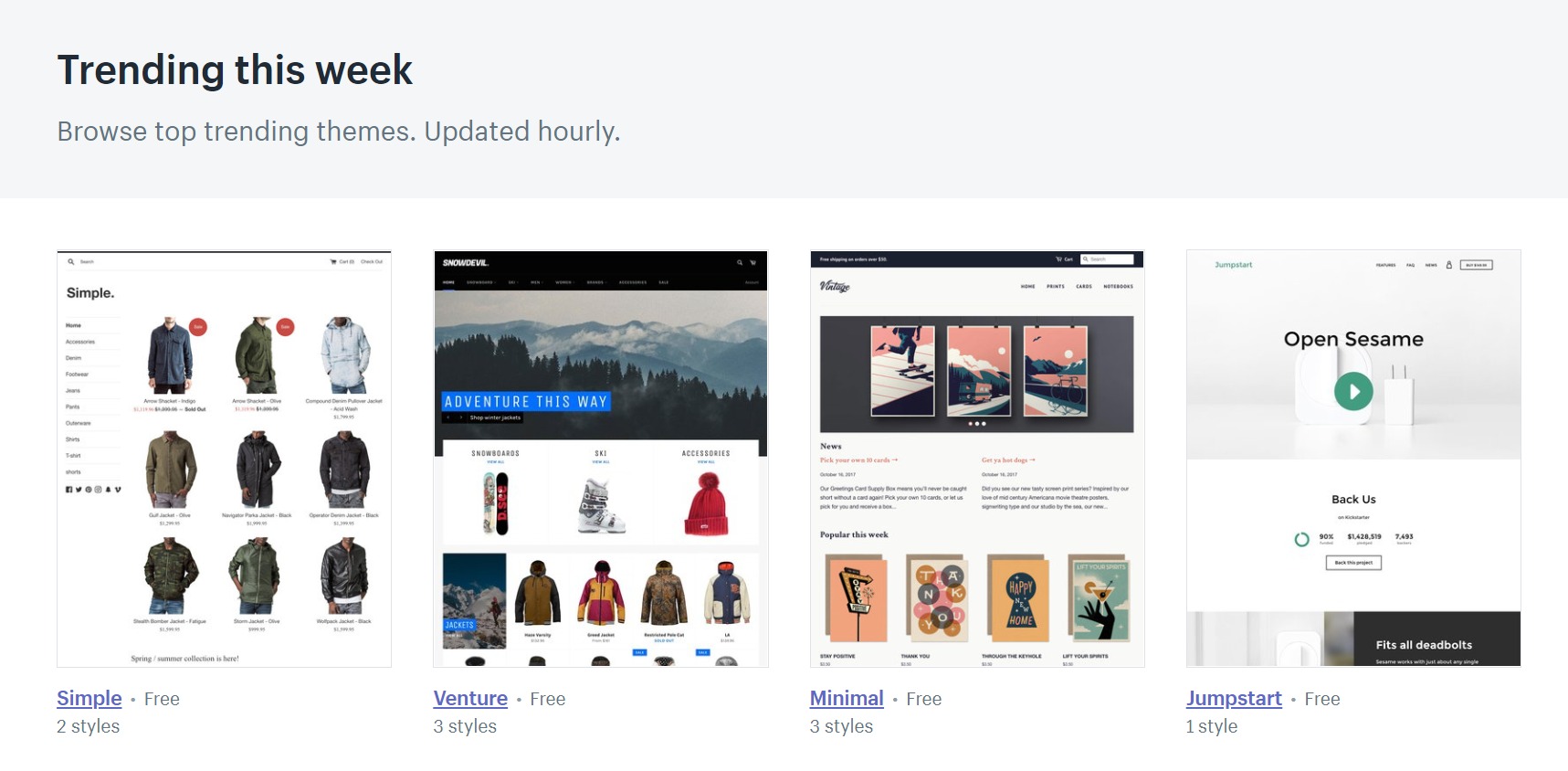 These are the themes currently trending and are updated every hour. From themes with clean lines to feature collections to themes that are perfect for your next crowdfunding adventure, you’ll find them all here.