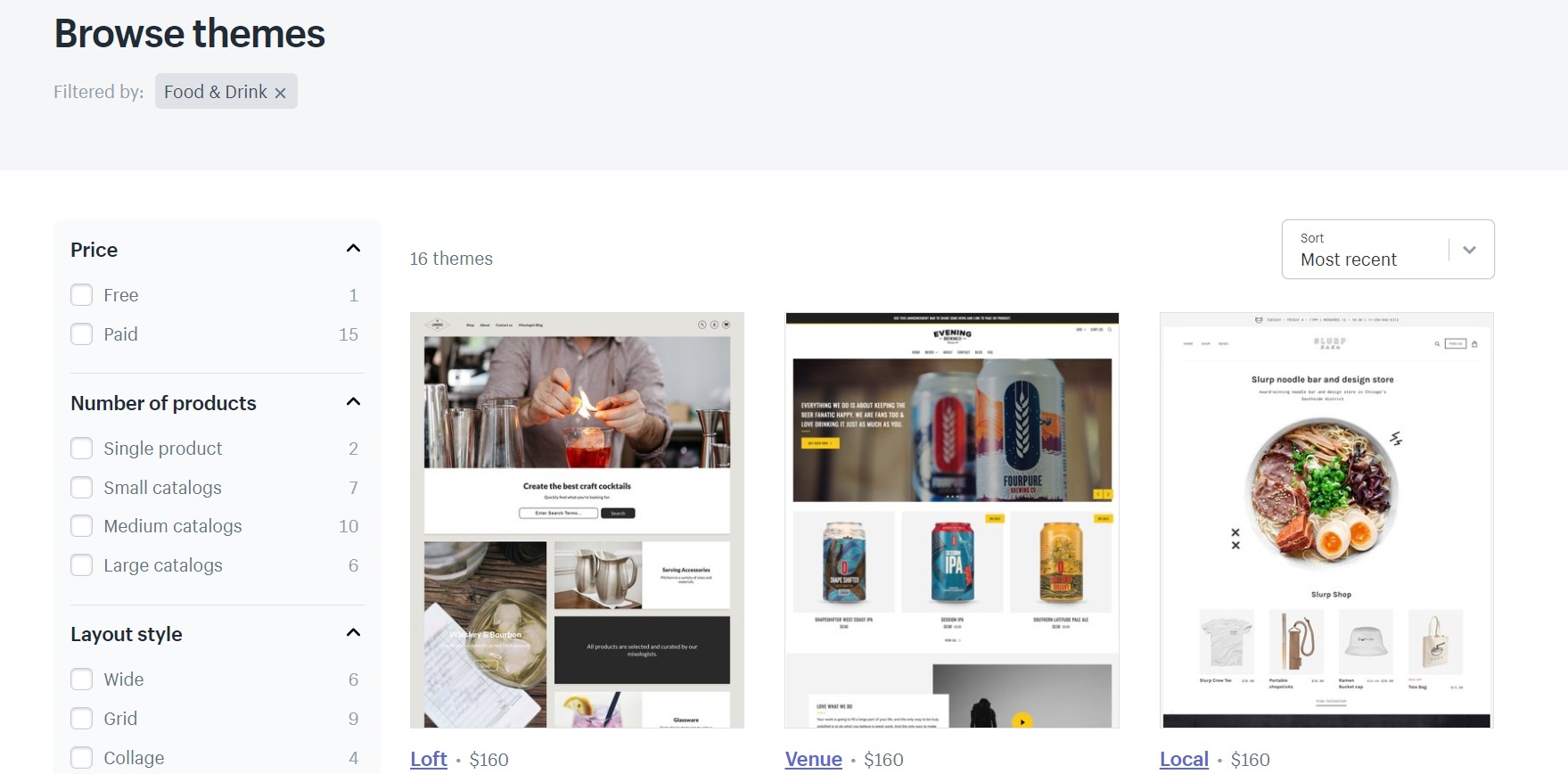 These themes especially cater to food and drink lovers everywhere. From fresh organic produce to craft beers, you can perfectly showcase your products on these themes.