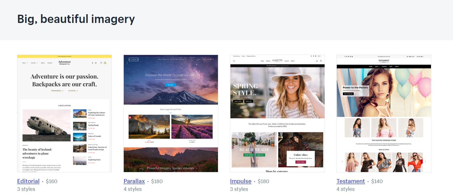 As the name suggests, gorgeous pictures are the focus of this category of themes. A great option for photography and travel enthusiasts and those who love displaying high-quality photographs to showcase a product collection in an online store.