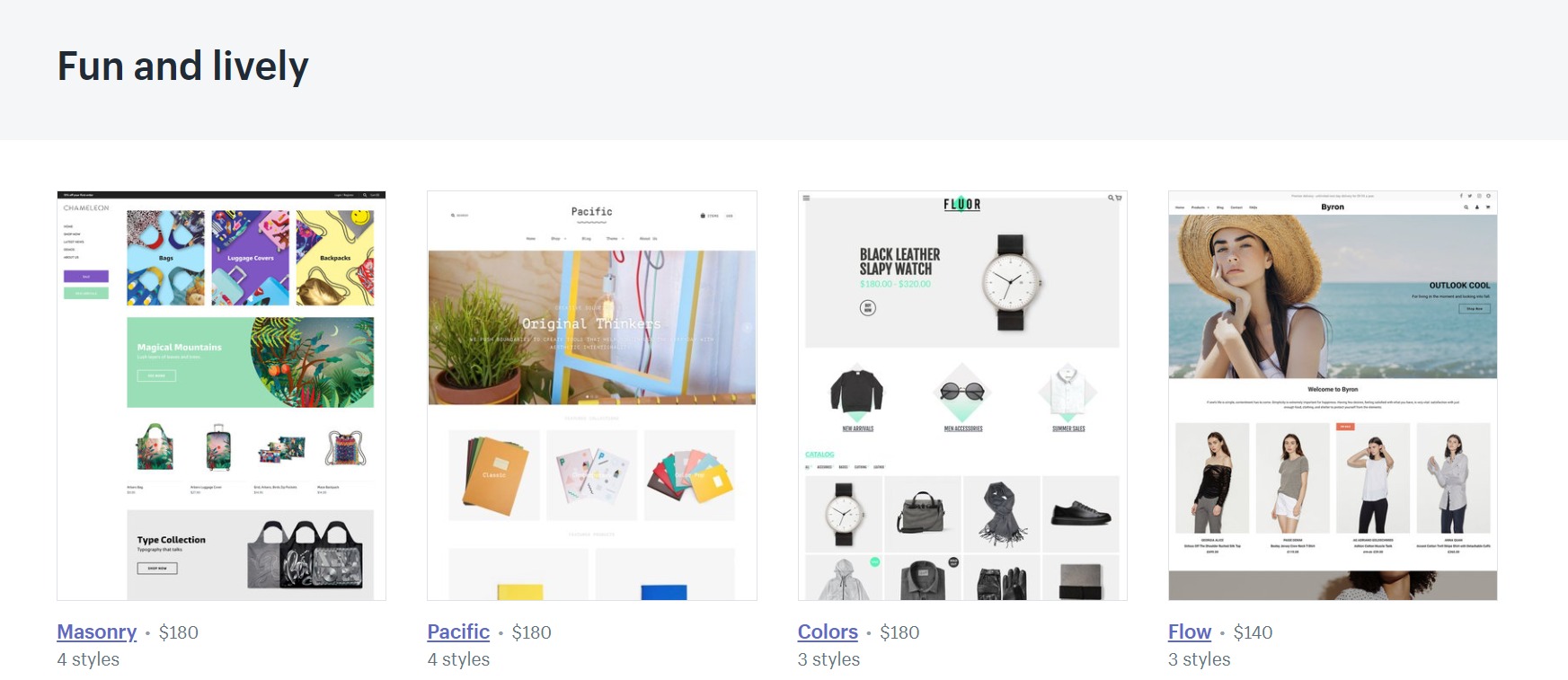 Does your product list have plenty of quirkiness and color? This category of themes works well with stores who have an emphasis on showcasing their colorful products like apparel, accessories, beauty products, and more.