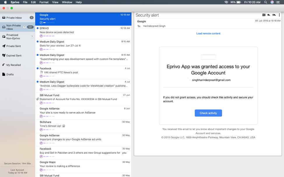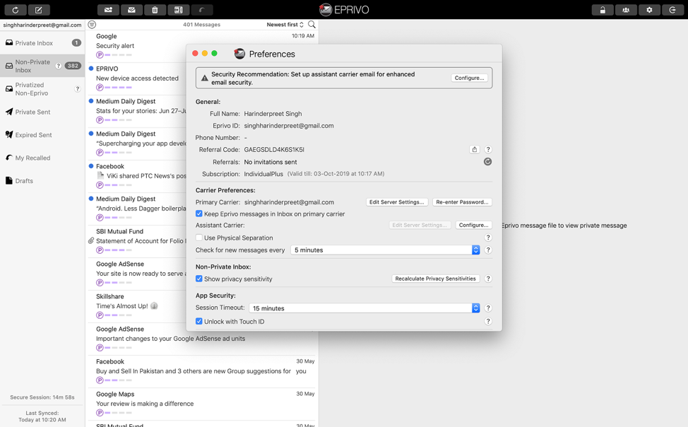 Okay, so there is This one more super slick feature left. This feature promises the utmost safety of your email. It’s basically a mixture of two features. Physical security and Digital security and apparently EPRIVO trust neither one completely.