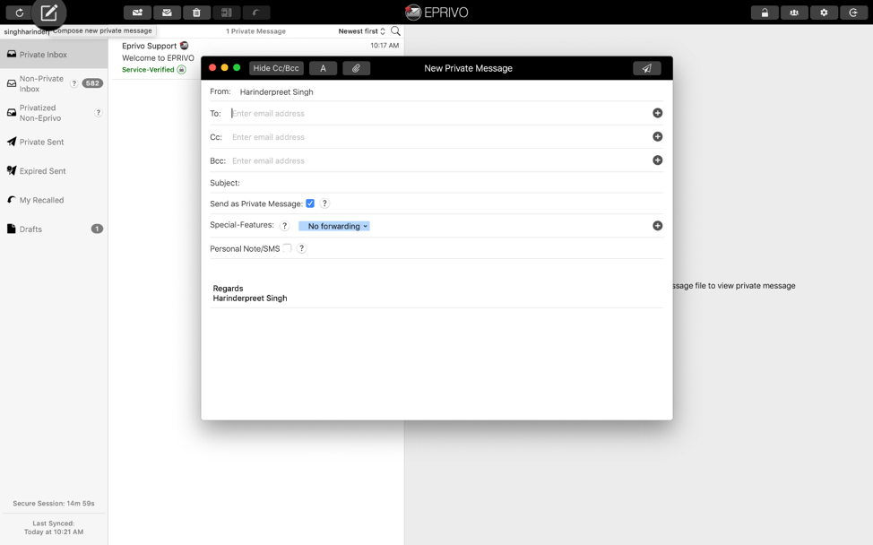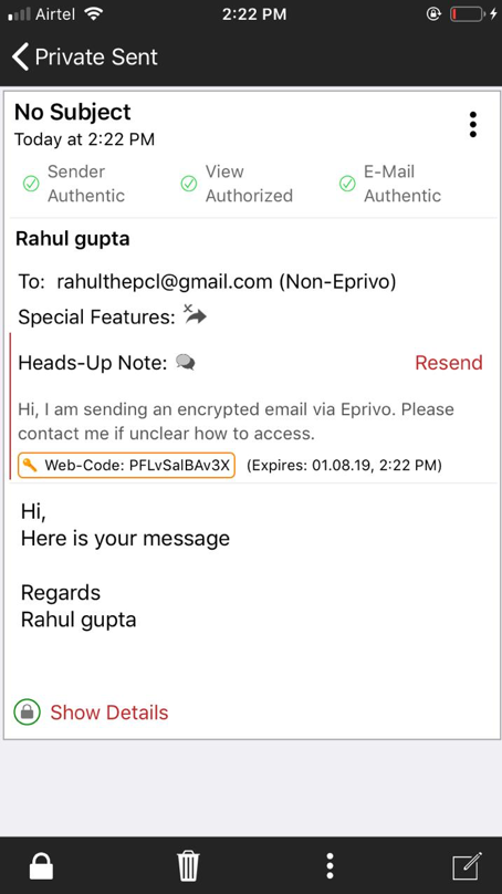 Private Emails to Non-EPRIVO Users: The latest update has also included two new exclusive features which enables you to send an email to Non-EPRIVO users. Not only this, you can also read that email on a web-based viewer and password on your laptop too.