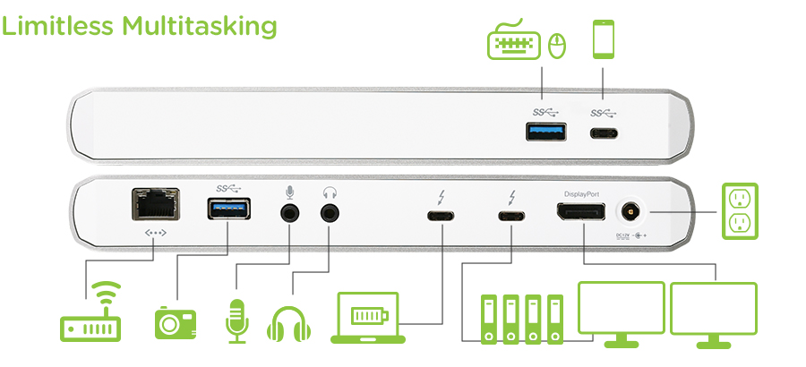 You can get an idea of the type of configuration that can be setup using this dock from the graphic below: