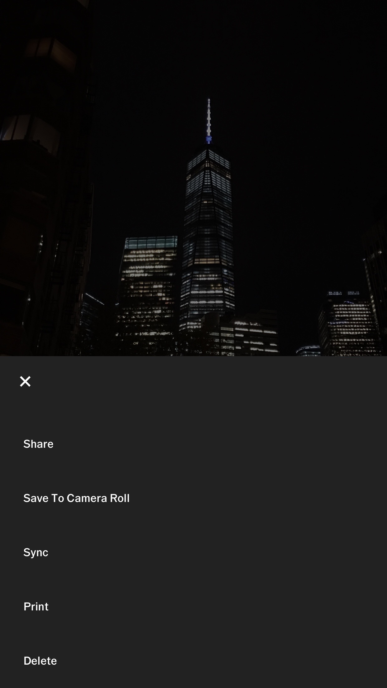 The only interface text (aside from being told to sign up or login) is nestled deep inside a menu when you open your gallery and have a single image in view, you can tap on the “…” button and be presented with the only text options in the entire app (as far as I know). Frankly, that menu is my favorite. Why? Because it’s the only one that I feel confident about what will happen when I tap on an option.